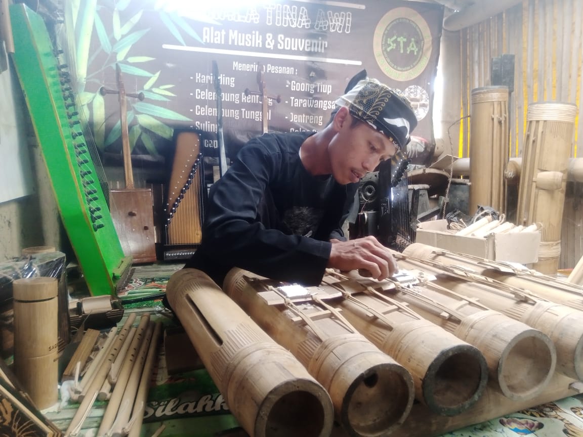 HayuKaBogor.com – Aban Sudrajat memilah batang bambu yang akan dijadikan produk alat musik tradisional Karinding. Memang tidak butuh banyak bahan yang dibutuhkan untuk membuat alat musik tiup khas sunda itu. Namun, juga tidak sembarang bambu yang bisa dijadikan bahan untuk membuatnya.