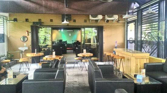 Punya 3 ruangan dari indoor, semi outdoor, dan outdoor yang cukup luas. Bagian indoor ada bar dan tempat duduk kayu. Area semi outdoornya ada taman. Sedangkan area outdoor-nya didominasi meja kursi berwarna putih dengan bebatuan dan kerikil kecil yang bernuansa alam.