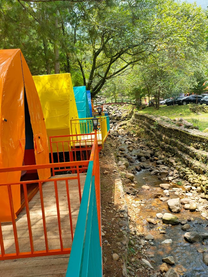 Jajaran bangunan penginapan termasuk jadi sasaran swafoto yang laris. Bangunan menyerupai wujud segitiga ini seringkali dipilih sebagai latar foto. Pengunjung mampu memanfaatkan bangunan berwarna-warni ini untuk mengabadikan moment kunjungan ke Curug Cipamingkis.