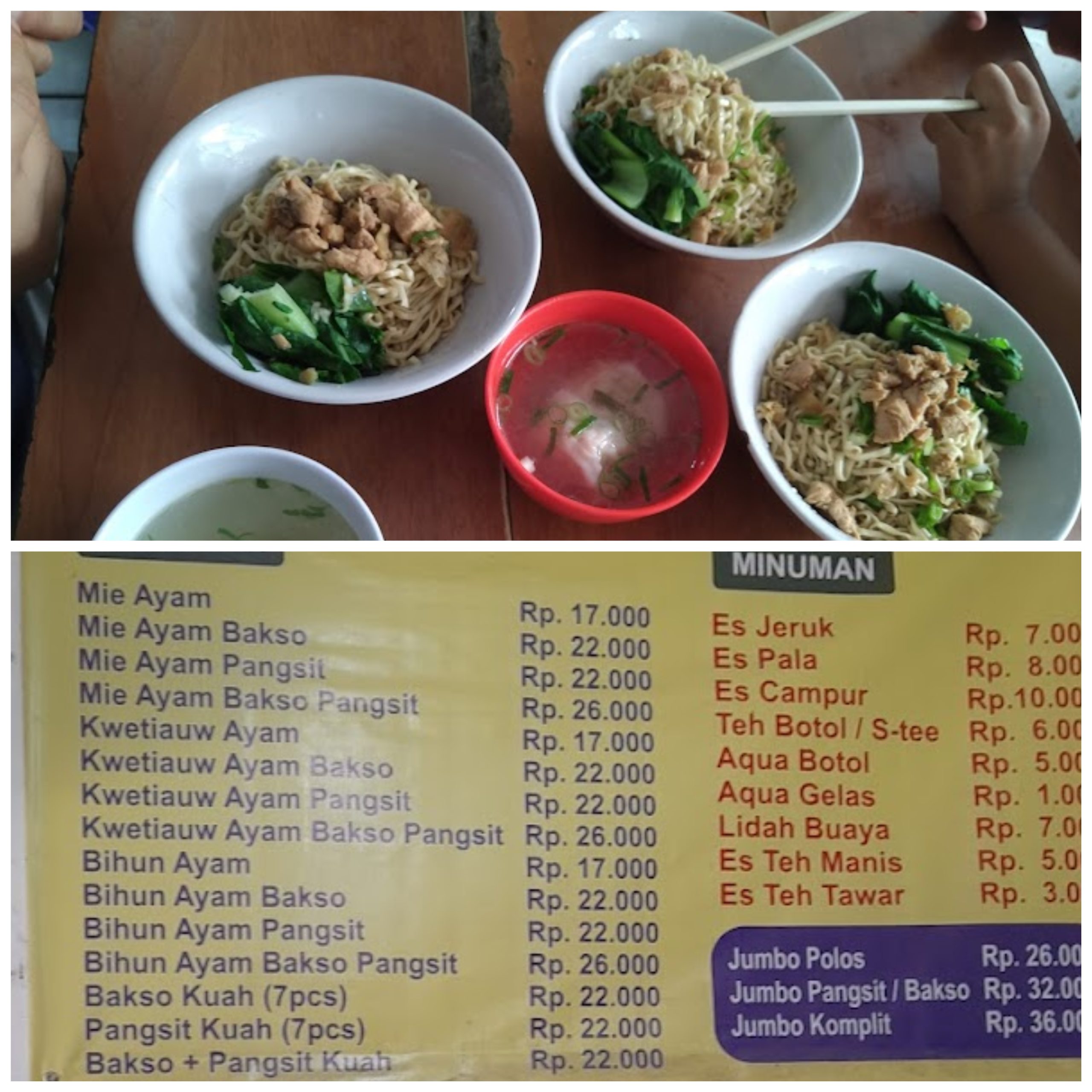 Selain Mie Ayam kedai ini menjual juga bihun, bakso dan es pala yang terkenal rasanya endulita juga nih! Dengan tipe mie Bangka yang asin gurih toppingan ayam yang cukup banyak, juga porsinya yang pas dengan harga terjangkau pula.