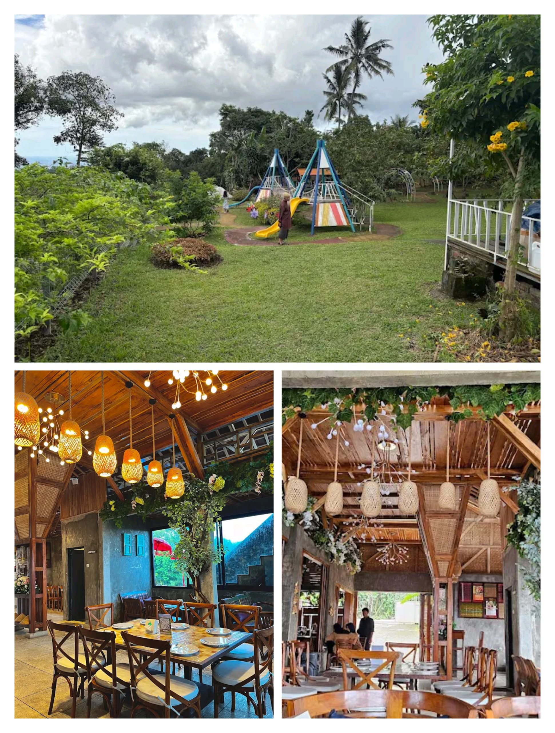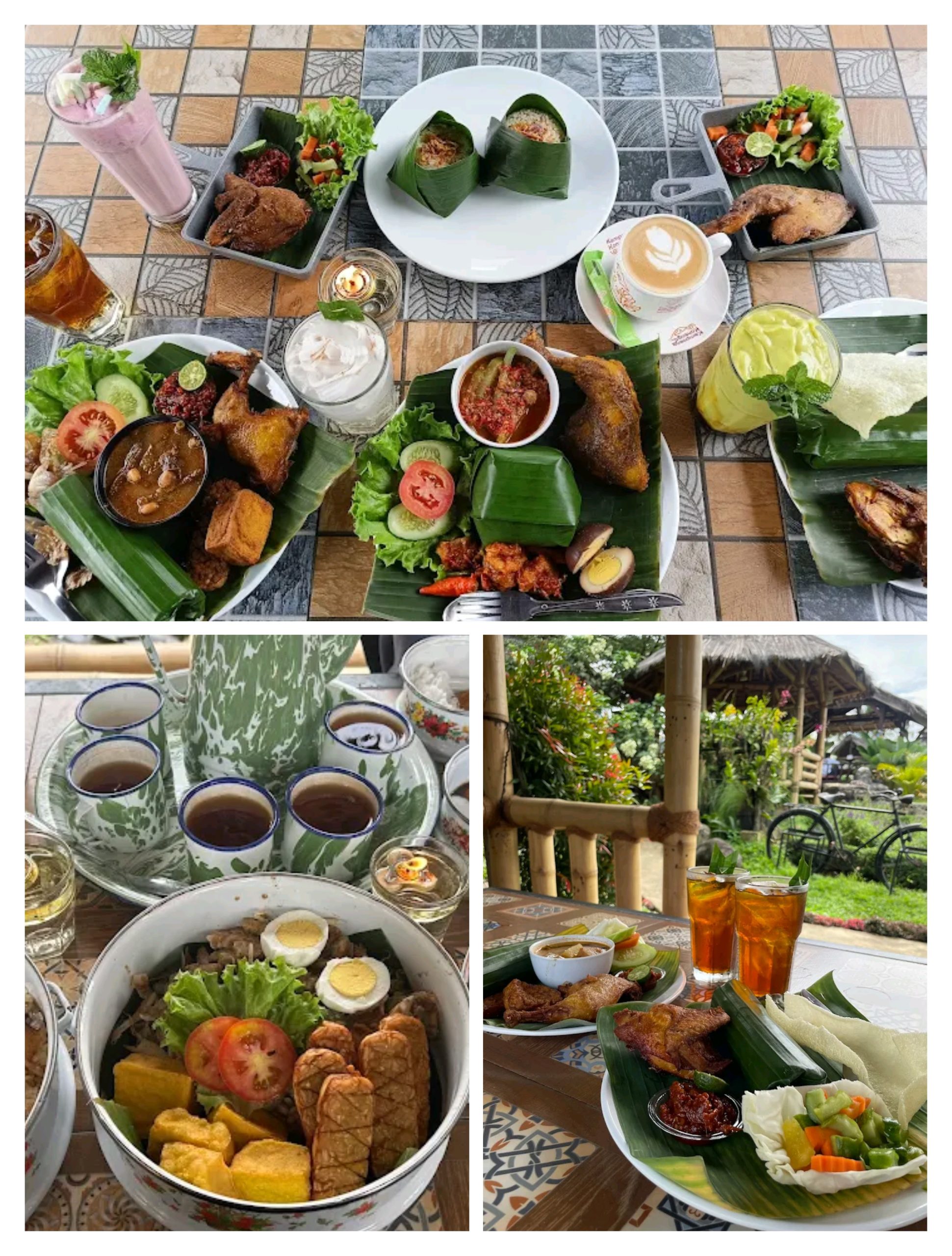 Punya suasana asri dengan tempat duduk outdoor dengan gajebo, bisa melihat gunung yang indah dan tempat makan ini seperti disebuah kampung pedesaan ya!