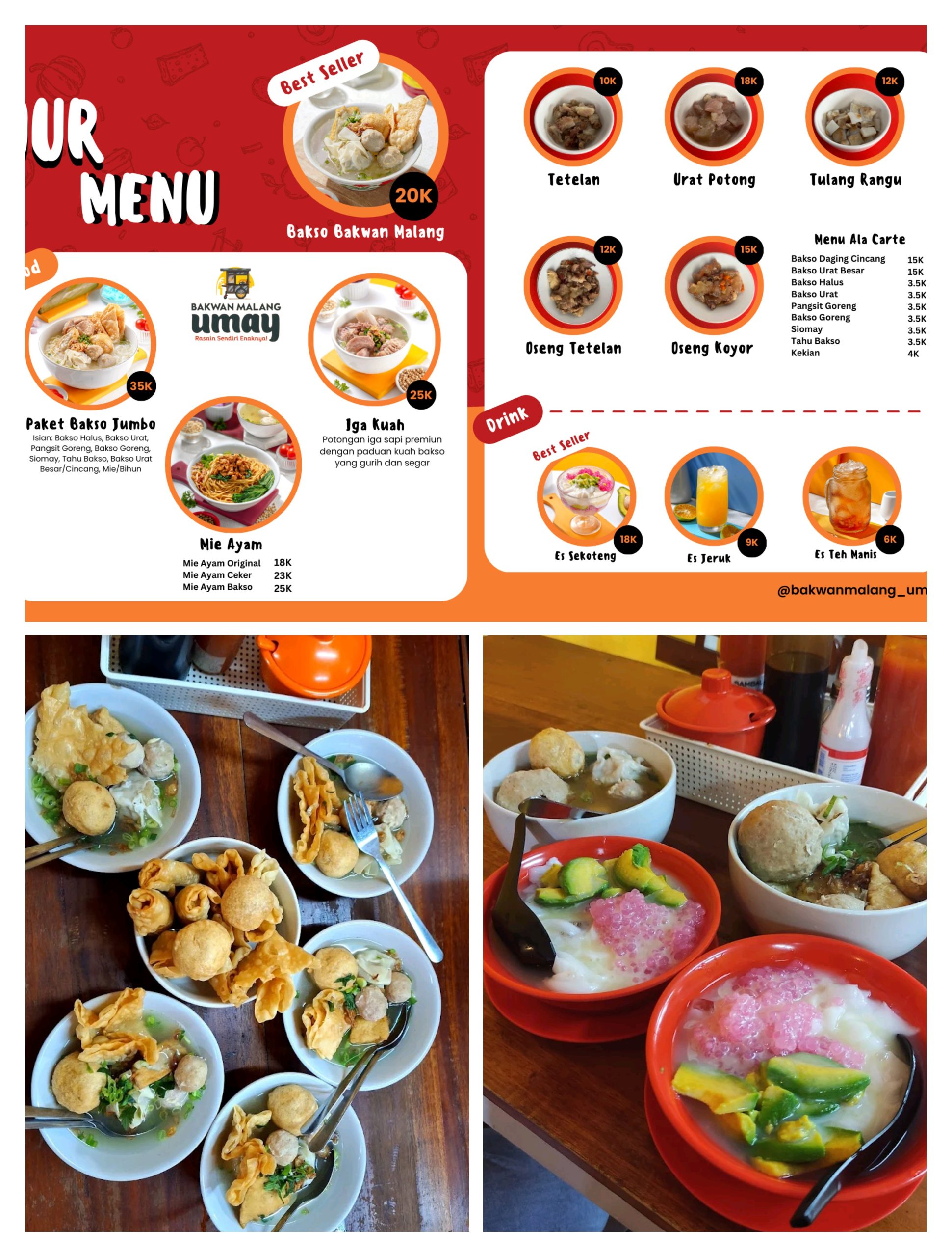 Dengan harga terjangkau Bakwan Malang Umay ini dibandrol mulai dari 20 ribuan aja Kamu sudah bisa menikmati bakso malang yang enak ya Guys!